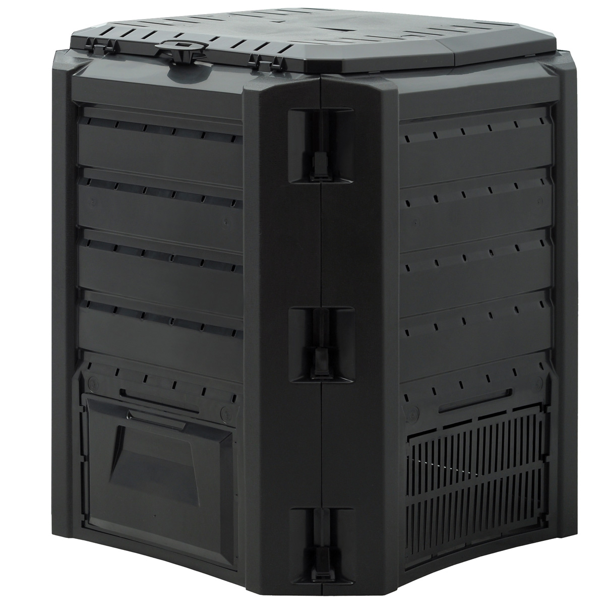 S naším rychlým kompostérem si můžete jednoduše vyrobit vlastní půdu bohatou na humus přímo ve vaší zahradě. Jeho navržený design a tmavá barva poskytuje vyšší teplotu uvnitř, což urychluje bakteriální rozklad a přináší lepší výsledky v kratším čase. Praktická klapka u spodní části umožňuje snadné vybírání hotového humusu. Stačí ho jen umístit do zahrady, naplnit odpadem a proces může začít. Naše kompostéry se rychle a jednoduše montují, bez potřeby jakéhokoli dalšího nářadí. Všechny potřebné konektory naleznete uloženy uvnitř.