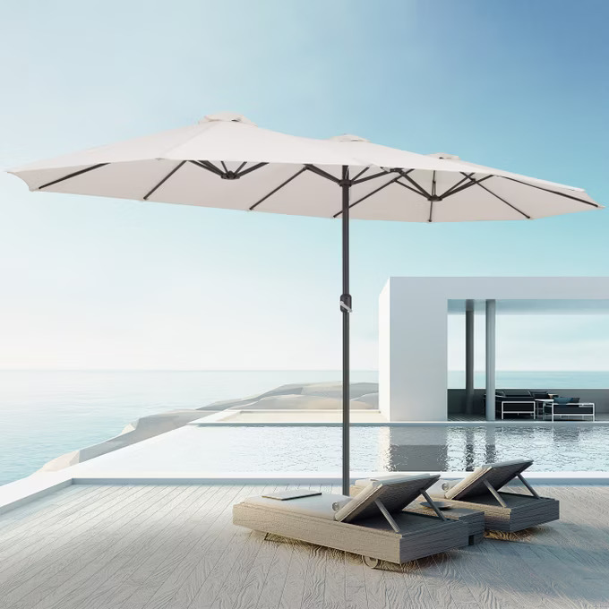 Obrovský slunečník o rozměrech 460 x 270 cm poskytuje vynikající ochranu před sluncem pro více osob. Díky praktické klice jej snadno a rychle rozložíte. S UV ochranou 80+ vám tento slunečník zajistí optimální ochranu slunečných dnů a stane se vaším ideálním letním společníkem. Vodoodpudivý potah zajišťuje ochranu i během neočekávaných letních přehánek. Robustní tyč o průměru 48 mm, vyrobenou z kvalitní oceli s práškovým nástřikem, lze rozdělit na dvě části pro snadnější přepravu a uskladnění. Tři větrací otvory na vrchu slunečníku zajišťují ještě větší stabilitu, protože vzduch přicházející zespoda může unikat vzhůru bez ovlivnění stínění. To také zabraňuje hromadění tepla pod slunečníkem.