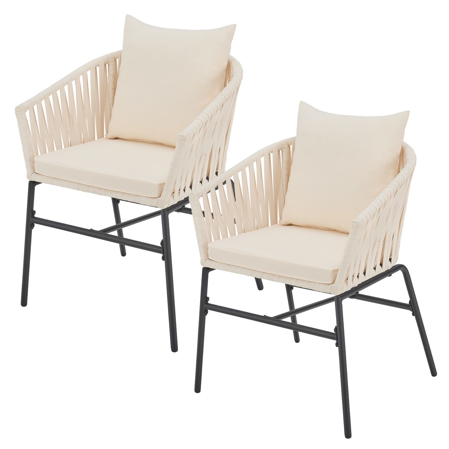 Stylové a elegantní, zvýrazníte svou terasu nebo balkon se 2 lanovými křesly. Lanová síť a hrubé čalounění zajišťují speciální komfort sezení. Konstrukce je mimořádně robustní a díky práškovému lakování je odolná vůči korozi a poškrábání. Elastická lanková síť spolu s hrubými sedacími a opěradlovými polštáři zajišťují, že balkonová křesla jsou obzvláště pohodlná. Zahradní nábytek vyrobený z oceli s práškovým nástřikem je odolný vůči korozi, povětrnostním vlivům a je ideální pro venkovní použití. Snadno udržovatelný materiál s odnímatelným čalouněním. Vysoká nosnost 160 kg na křeslo.