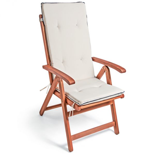 Pohodlné podušky na židle jsou vyrobeny z kvalitního odolného polyesteru a jsou ideální pro dlouhodobé používání venku nebo v interiéru. Tloušťka čalounění 5 cm zajišťuje dokonalý komfort sezení. Díky optimálním rozměrům se podušky vejdou na všechny standardní židle s vysokým opěradlem. Díky šňůrkám připevněným na boku a elastickému popruhu je snadné zabránit sklouznutí. Podušky jsou vodoodpudivé, takže náhodně rozlité tekutiny lze otřít bez zanechání zbytků. Moderní barvy s nadčasovým prošíváním poskytují skvělý akcent na zahradě nebo na terase.