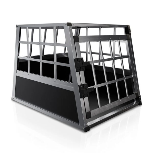 Box na bezpečnou přepravu psů M. S hliníkovým přepravním boxem pro psy M můžete přepravovat malé psy pohodlně a bezpečně. Uložte box do kufru nebo ho připněte na zadní sedadlo auta. Díky lichoběžníkové struktuře se přepravní box vejde do kufru nebo na zadní sedadlo mnoha běžných modelů automobilů. Je vysoký 51 cm, má podlahovou plochu 54 × 69 cm a dá se rychle připevnit k automobilu. Skvrny lze ze síťové krabice snadno odstranit vlhkým hadříkem. Cestovní box odolný vůči korozi je vyroben z dýhovaných dřevěných panelů MDF a hliníkové síťoviny. Tato kombinace zajišťuje prvotřídní stabilitu a dlouhou životnost. Díky nízké hmotnosti ho zároveň lze bez námahy zvednout z kufru. Dveře lze bezpečně uzamknout zámkem.