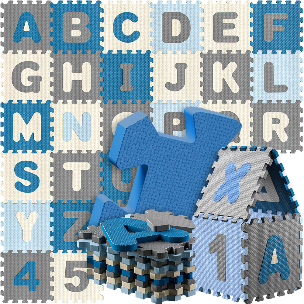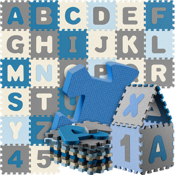 Dětská podložka se skládá z 86 dílů, lze ji poskládat a vytvořit tak barevné hrací plochy a tvary. Měkké podložky nabízejí dětem bezpečné místo pro hraní a možnost zkoumat čísla a písmena.