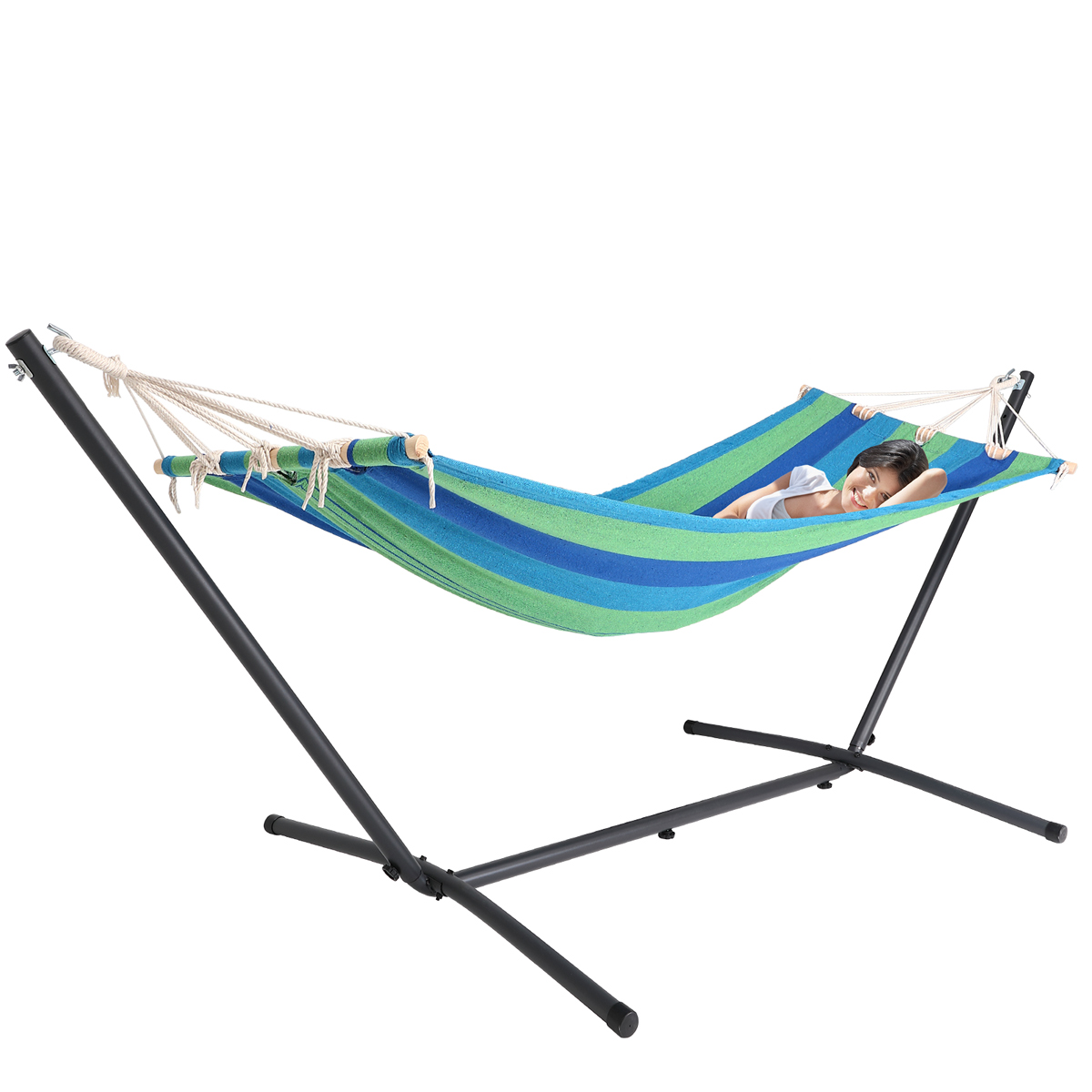 Houpací síť s kovovým rámem 200 x 80 cm – zelená