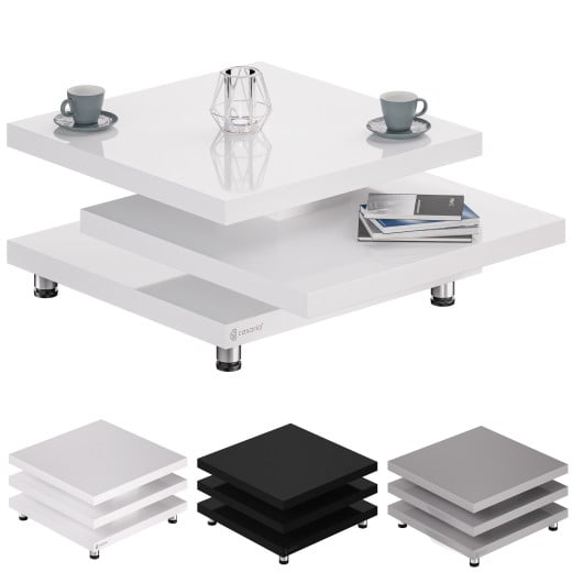 Konferenční stolek New York spojuje moderní design s funkčností. Dá se použít různými způsoby a se svými jasnými liniemi je stylovým středobodem každého obývacího pokoje. Dvě horní desky stolu mají inovativní funkci otáčení o 360 stupňů. Tvar stolku lze přizpůsobit vašim individuálním potřebám. Se svými třemi čtvercovými panely poskytuje dostatek úložného prostoru na vše, co v obývacím pokoji potřebujete. Lakované povrchy s vysokým leskem se obzvlášť snadno ošetřují a lze je snadno otřít vlhkým bavlněným hadříkem. Výškově nastavitelné nožičky z nerezavějící oceli s pogumovanými chrániči podlahy dodávají konferenčnímu stolku stabilitu a chrání podlahu.