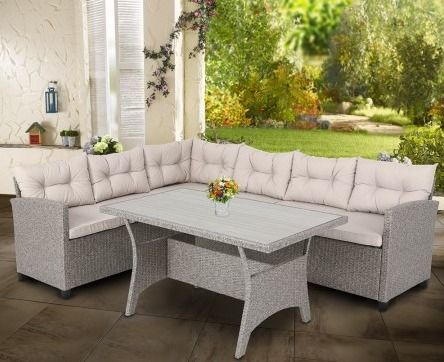 Ratanový set Sedan v elegantním a moderním designu bude skvělou volbou pro relaxaci nebo posezení s přáteli na vaší terase nebo zahradě. Rohová sestava se skládá ze 2 sedadel (175 cm + 165 cm), 6 odnímatelných podušek, 7 zádových polštářů a stolu, ten je vyroben z WPC materiálu z velmi robustní a odolné dřevoplastové směsi v podobě dřeva. V důsledku toho je váš nábytek dobře chráněn před větrem a vlivem nepříznivého počasí. Hrubé 15 cm zádové polštáře a 7 cm silné podušky poskytují potřebný komfort při sezení. Potahy podušek jsou opatřeny zipem a jsou vodoodpudivé, výsledkem je, že kapaliny nejsou okamžitě absorbovány a mohou se snadno odstranit. Polyratan byl speciálně vyvinut pro zahradní nábytek. Je odolný proti UV záření, povětrnostním vlivům, odpuzující nečistoty a snadno se čistí. Nábytek je vhodný do exteriéru a interiéru. Soupravu lze přizpůsobit vašim potřebám a lze ji postavit obráceně.