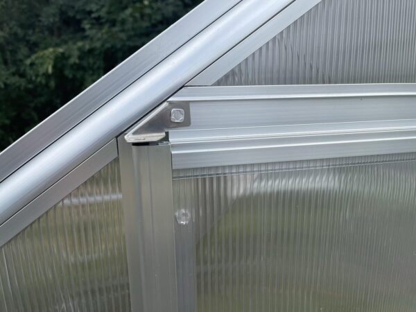 Obsahem balení jsou jednokřídlé dveře na pantech (š x v otvoru = 0,61 x 1,64 m), AL profily, prosklení, pozinkovaná ocelová základna, 2x střešní ventilační okénko s manuálním otevíráním, veškerý spojovací materiál. Ke skleníku je možné dokoupit řadu nadstandardního příslušenství - poličky, regály, další větrací střešní i boční okénka, automatické otvírače k těmto okénkům, okapové sady, teploměry, vlhkoměry, zavlažovací zařízení, elektrické odporové vytápění půdy.