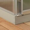 Konstrukce skleníku je vyrobena z kvalitních eloxovaných hliníkových profilů 1,2 mm, kdy výrobce poskytuje smluvní záruku 15 let na AL konstrukci. Prosklení je z kaleného čirého skla síly 3 mm. Čiré sklo zajišťuje výbornou světelnou propustnost, takže do skleníku je krásně vidět ze všech stran a můžete se kochat barvami pěstovaných rostlin. Kalená verze skla navíc zajišťuje jeho naprostou bezpečnost - v případě rozbití se skleněná výplň roztříští na tisíce malých kousků, což zabrání případnému vážnému zranění. To je velmi důležitá vlastnost skleníku, kterou ocení především rodiče malých dětí pobíhajících po zahradě. Prosklení je do hliníkových profilů kotveno pomocí ocelových sponek. Pokud by vás tento skleník zaujal, ale spíše byste uvítali polykarbonátové výplně, podívejte se na varianty s polykarbonátem zde.