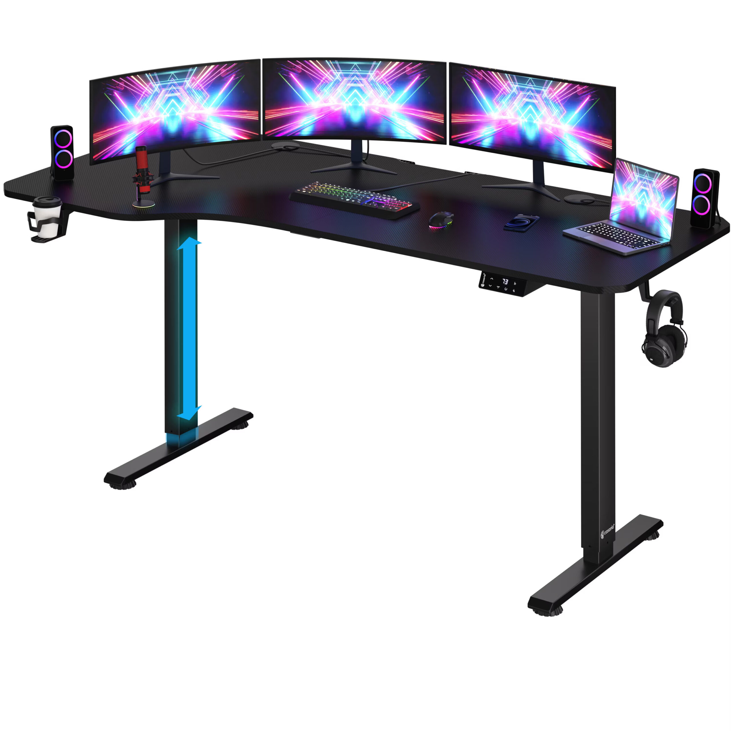 Výšku stolu lze plynule elektronicky nastavovat.Stůl s LCD displejem je vybaven mechanismem, který umožňuje jeho zvedání rychlostí 2,25 cm/s a přitom pracuje tiše, při hlučnosti pouhých 50 dB. Nabízí praktické funkce, jako paměťová nastavení výšky a připomínky na změnu polohy. Mezi další užitečné doplňky patří držáky na kabely, nápoje a sluchátka, která udrží pracovní plochu uklizenou. Polohu stolu můžete nastavit dle vlastních preferencí, takže ji kdykoli přizpůsobíte dle potřeby.