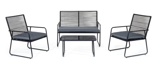 Zahradní kovová sestava Lesja přináší do vašeho exteriéru osvěžující atmosféru pro společné chvíle s rodinou či přáteli. Jednoduchý, ale elegantní dizajn osloví nejen příznivce minimalistického stylu, ale každého, kdo ocení vkusná a praktická řešení. Robustní konstrukce zaručuje dlouhodobé využití. Sestava sestává ze dvou židlí, lavice a stolku, které spolu vytvářejí ideální místo pro čtyři lidi k odpočinku, rozhovory či společné občerstvení. Jejich flexibilita umožňuje různá uspořádání podle potřeby, a to s lehkostí manipulace. Praktické podsedáky v šedé barvě přidávají do sestavy vkusný detail. Konferenční stolek s povrchem z temperovaného skla je nejen snadno udržovatelný, ale také moderním doplňkem k celkovému industriálnímu či minimalistickému stylu. Sestava je vyrobena z oceli, což zaručuje její odolnost a pevnost. Její univerzálnost ji předurčuje nejen pro exteriér, ale také jako elegantní doplněk interiéru. Svým designem umožňuje snadné kombinování s jiným nábytkem a rozšíření o další sezení podle potřeby.