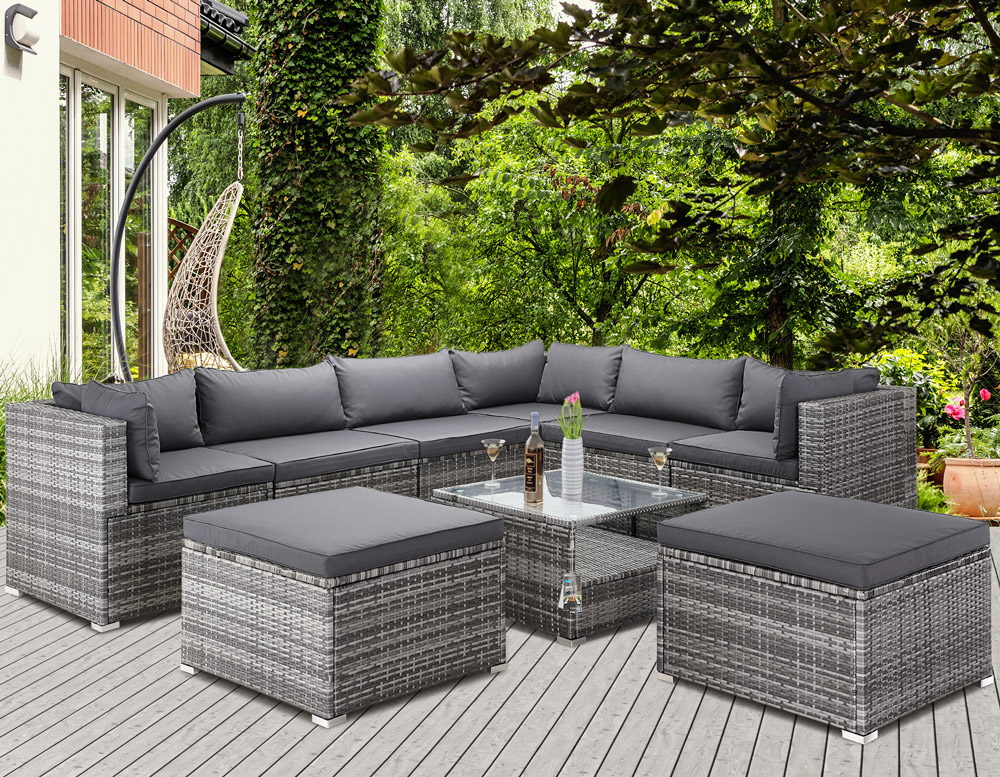 Zahradní ratanový set XXL – šedá/antracit podušky